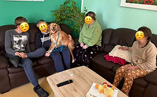 Ein Hund hinten rechts im Bild von Teddys Vermittlungsfoto.